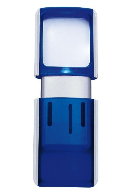 Beim Hochziehen des Gehäuse-Oberteils schaltet sich das weiße LED-Licht ein. Wird das Gehäuse-Oberteil nach unten gezogen schaltet sich das LED-Licht wieder aus. Wir liefern Ihnen die LED-Leuchtlupe in den Farben schwarz, rot und blau.
