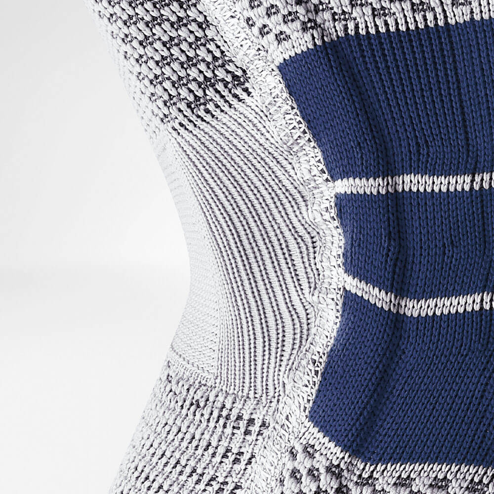 - Die Kniegelenkbandage bietet einen hohen Tragekomfort, da das Gestrick atmungsaktiv ist, die Kniekehle weichen Eigenschaften besitzt und die Randbereiche druckminimiert verarbeitet worden sind