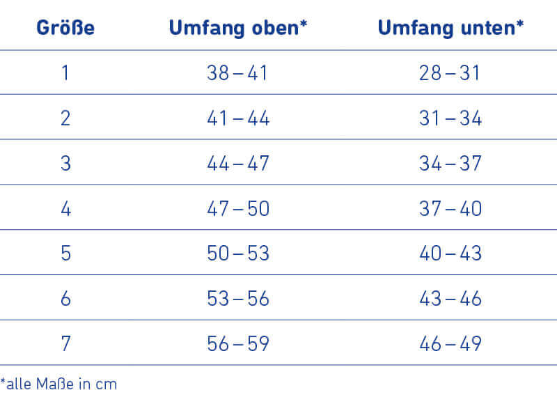 - Größe 7: 56-59cm (oben), 46-49cm (unten)