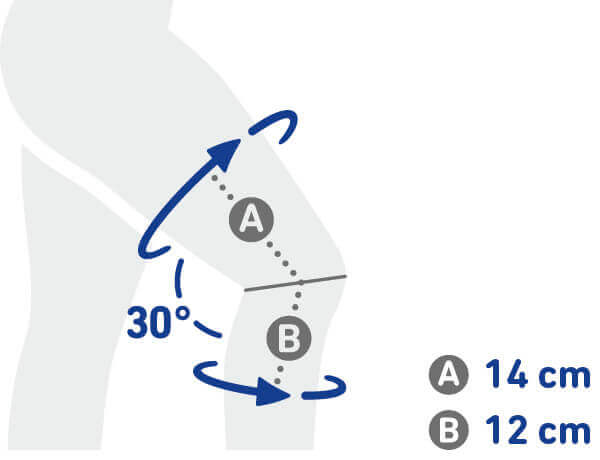 Die Kniebandage ist für die rechte Seite bestimmt und in 7 Größen erhältlich. Die richtige Größe ist abhängig vom Umfang über und unter Ihrem Oberschenkel. Folgende Größen sind lieferbar: