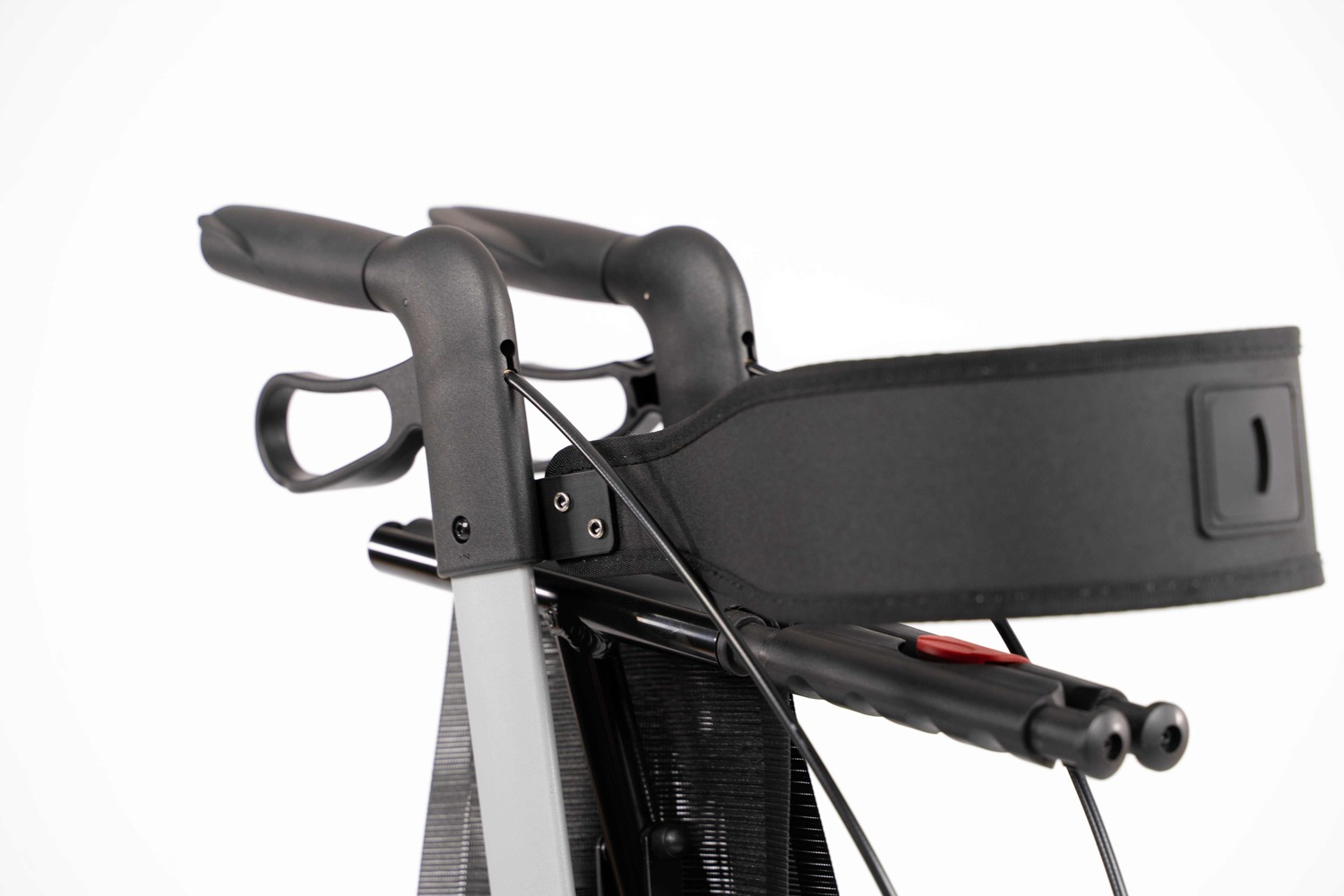 Dank einer offenen, bis 5-kg belastbaren Einkaufstasche können Sie unterwegs auch kleinere Einkäufe erledigen. Mit dem Rückengurt können Sie bei Spaziergängen komfortablere Pausen auf der Sitzfläche einlegen. Ein integrierte Stockhalter erlaubt die Mitführung eines Gehstocks, der dann jederzeit griffbereit ist.