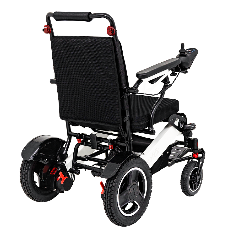 - Das Modell ist trotz des geringen Netto-Eigengewichtes von 23,5 kg ohne Akku bis 145 kg belastbar, wodurch auch übergewichtige und adipöse Personen ohne Bedenken in puncto Stabilität mit dem E-Rollstuhl fahren können